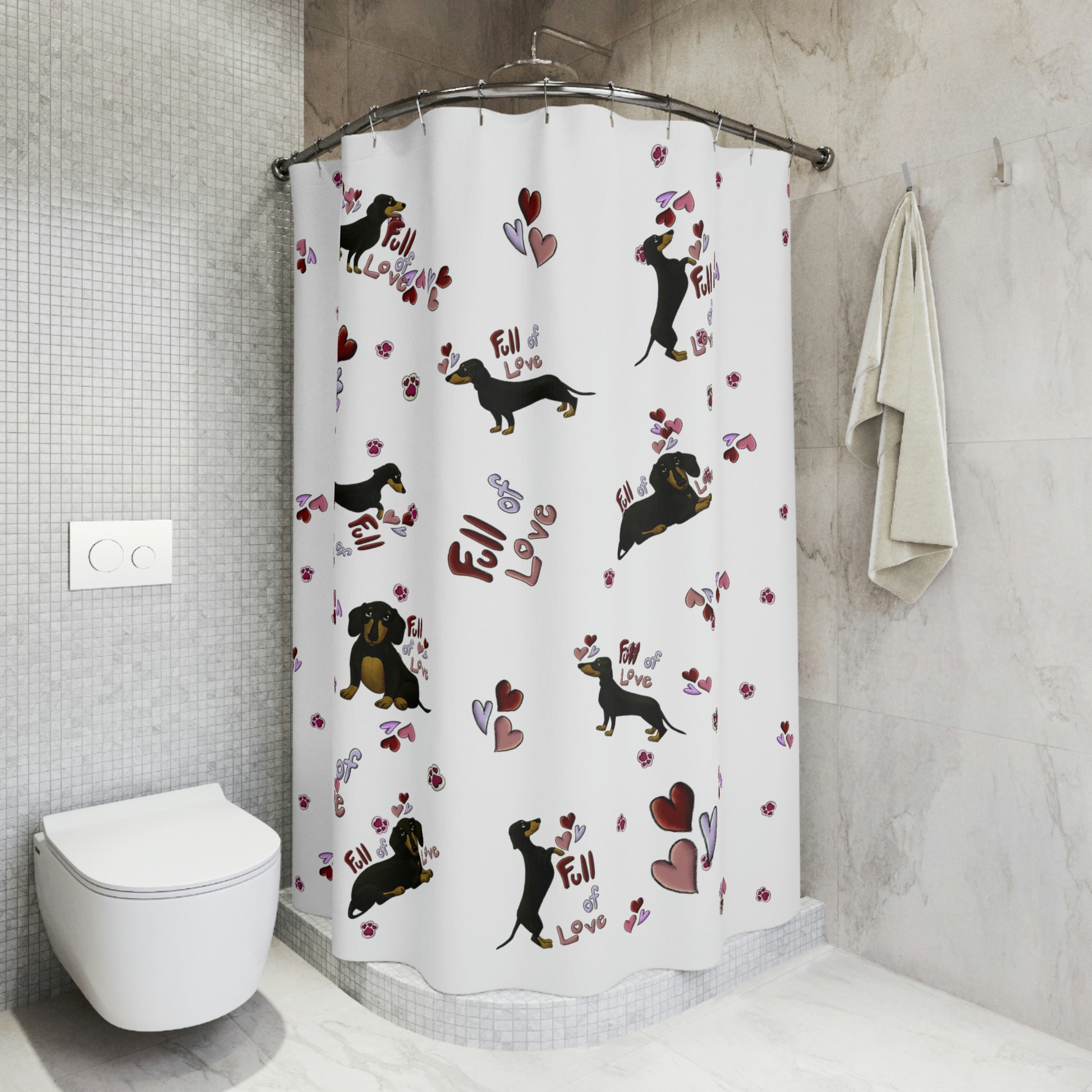 Dachshund Love Polyester Shower Curtain