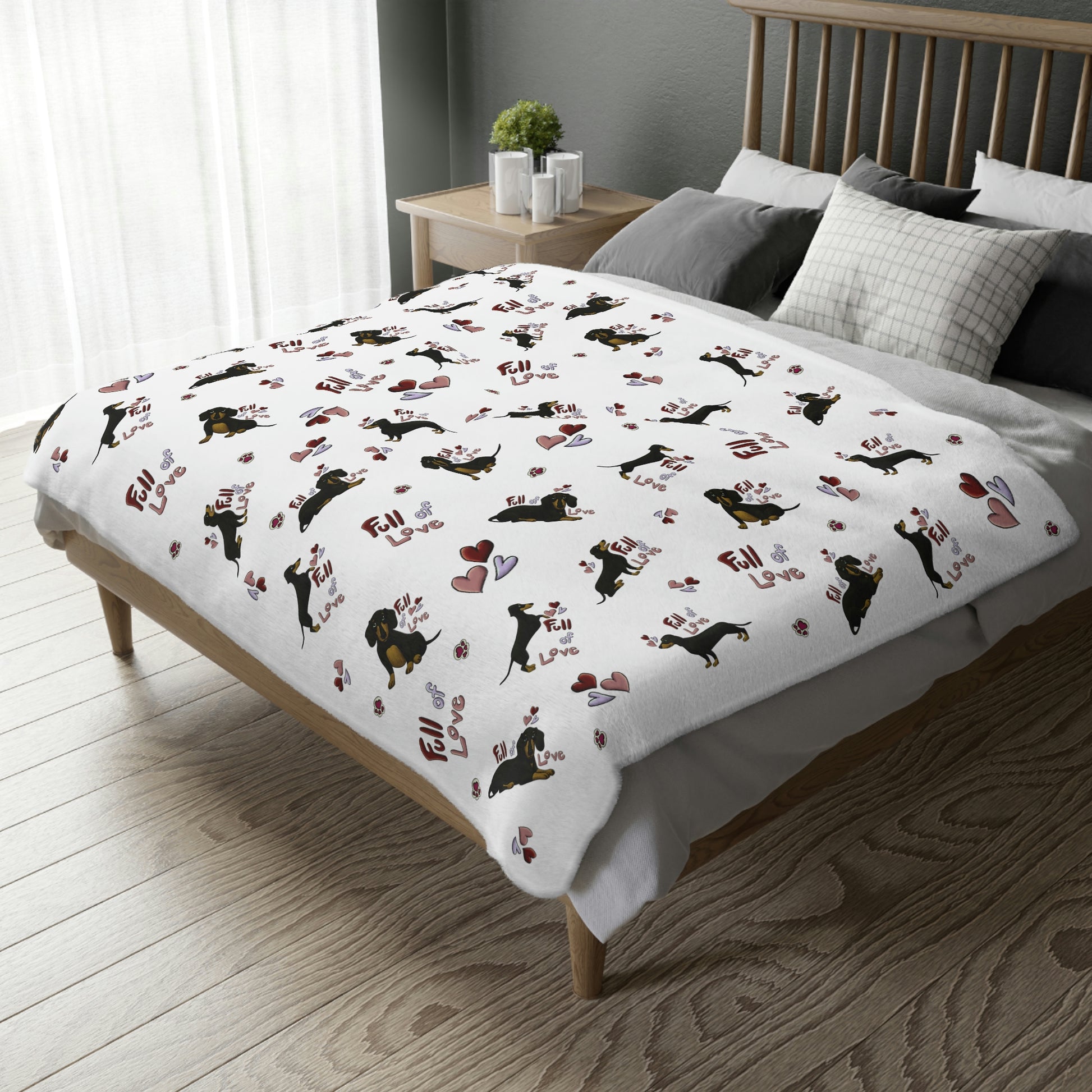 Dachshund Love Velveteen Minky Blanket (Two-sided print)