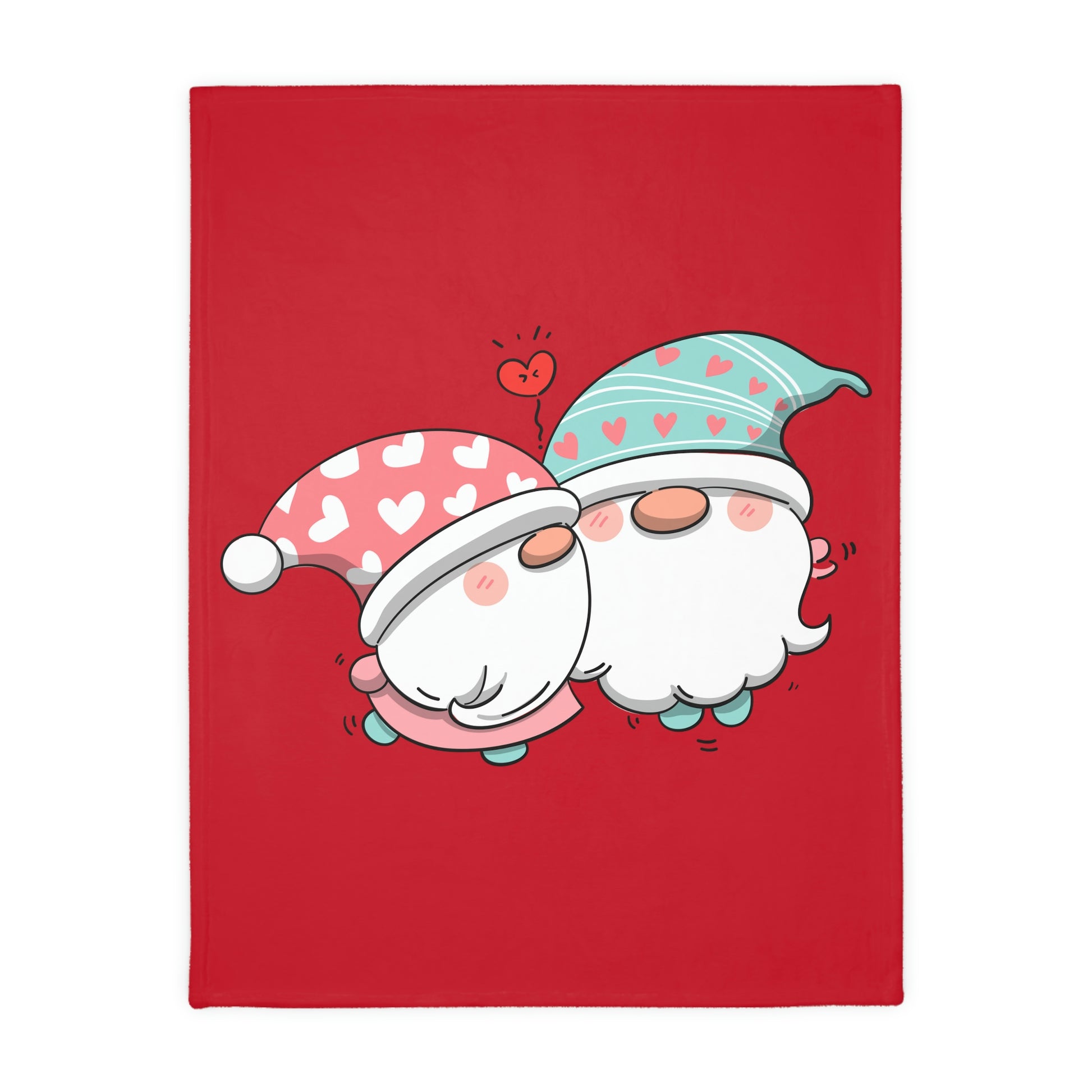 Two Valentine Gnomes Velveteen Minky Blanket (Two-sided print)