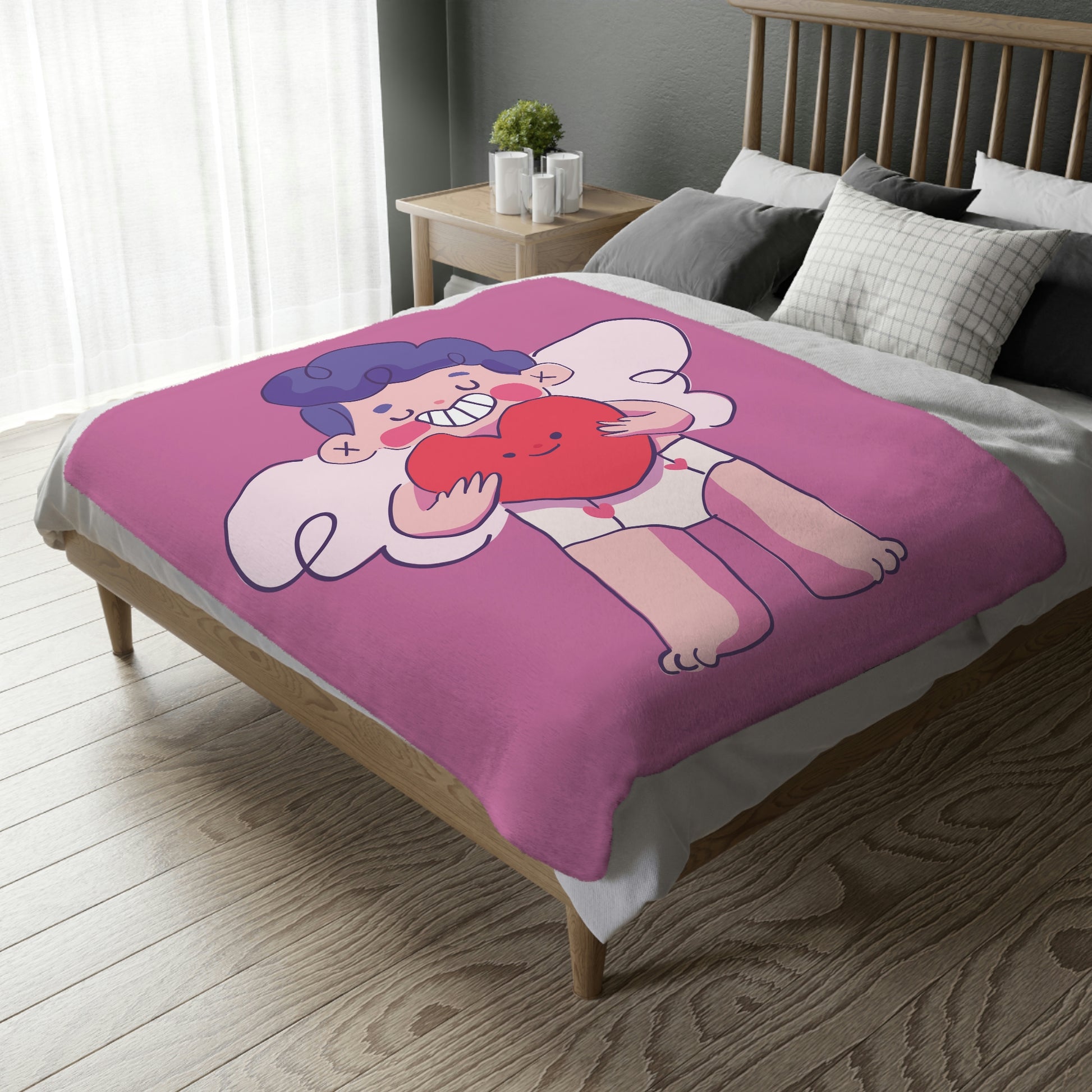 Valentine Boy with Hurt Velveteen Minky Blanket (Two-sided print)